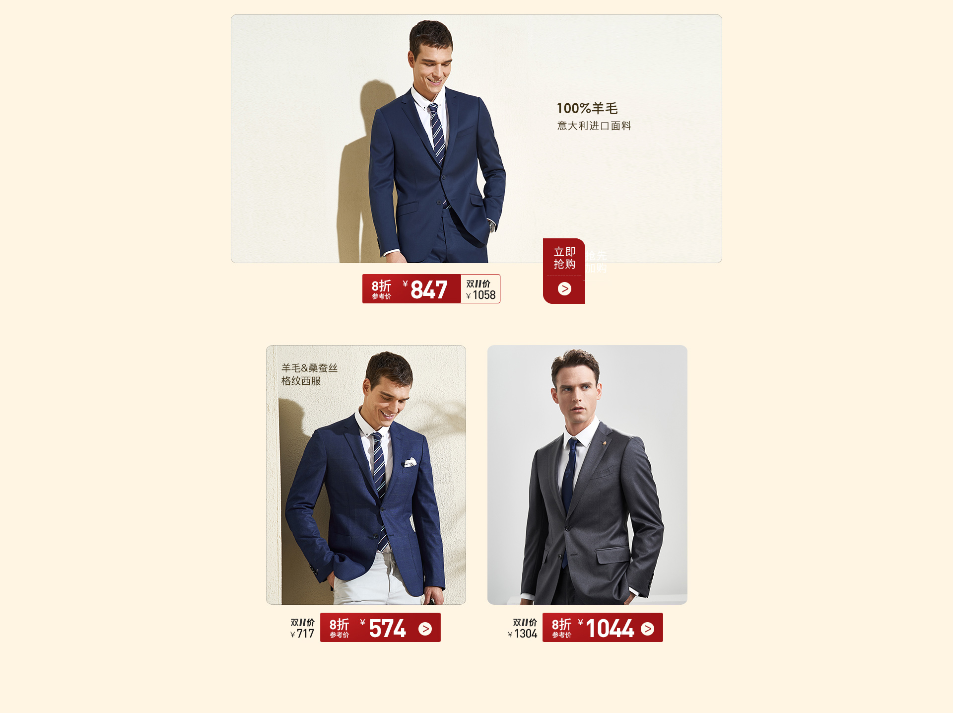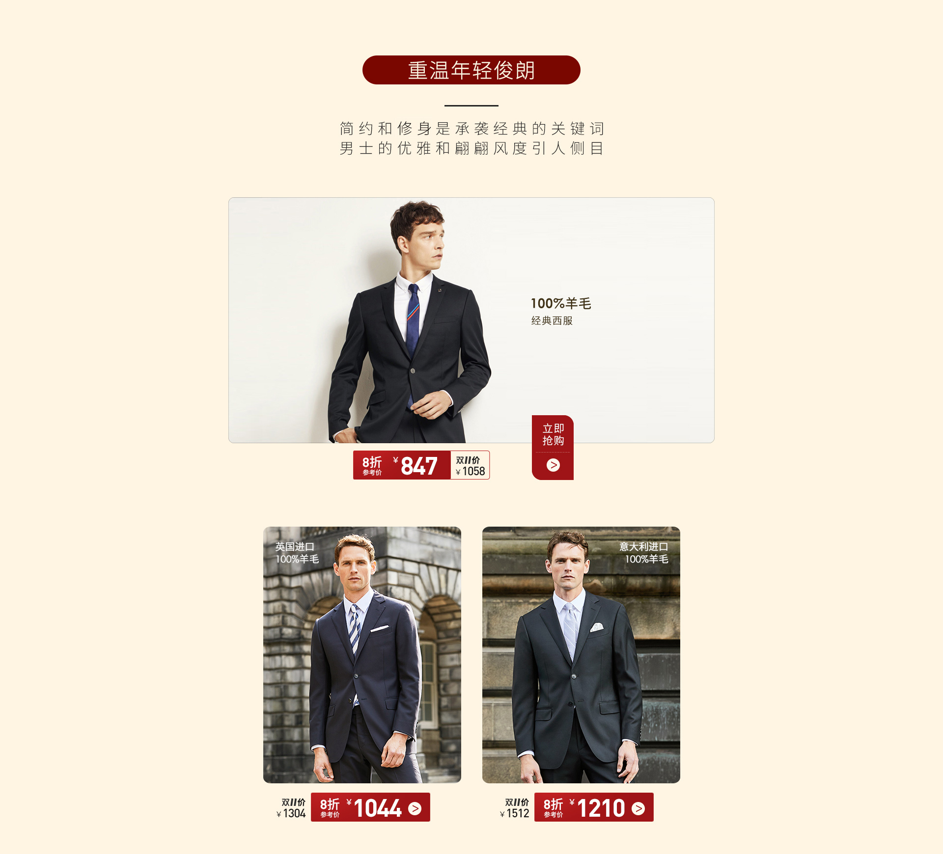 - VICUTU/威可多男士套装西服上装商务正装纯羊毛意大利进口面料 惠