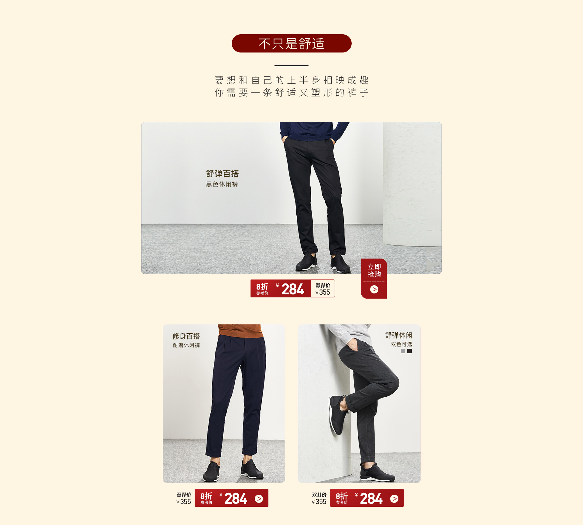 - VICUTU/威可多男士时尚微弹休闲裤棉质透气舒适百搭男士裤子