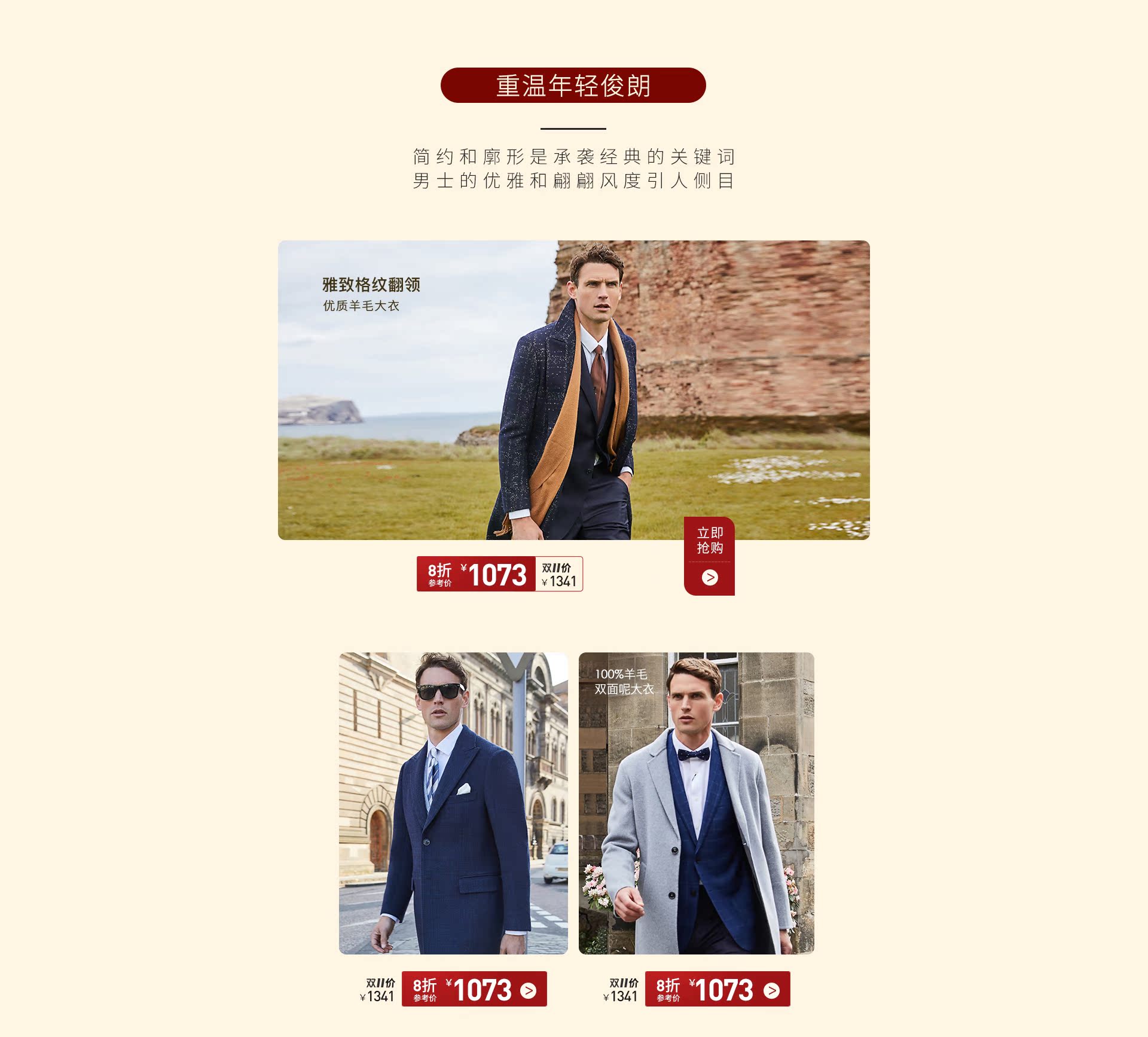 - VICUTU/威可多男士毛呢大衣修身中长款羊毛保暖大衣外套
