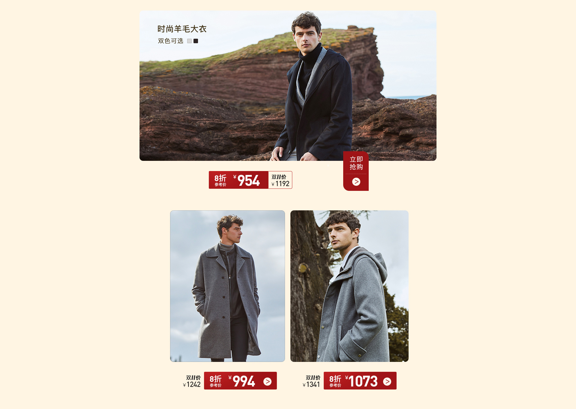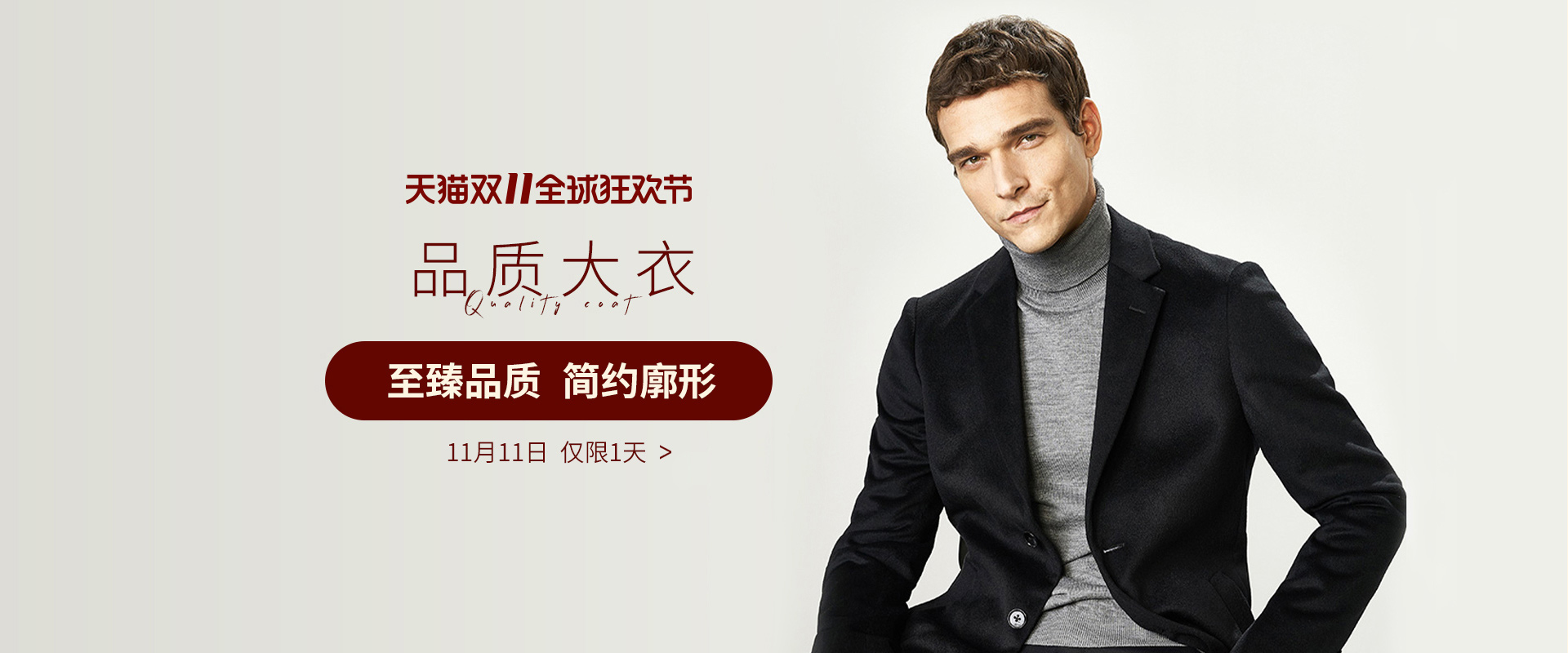- VICUTU/威可多男士冬季中长款毛呢大衣男呢子含内胆灰色外套男