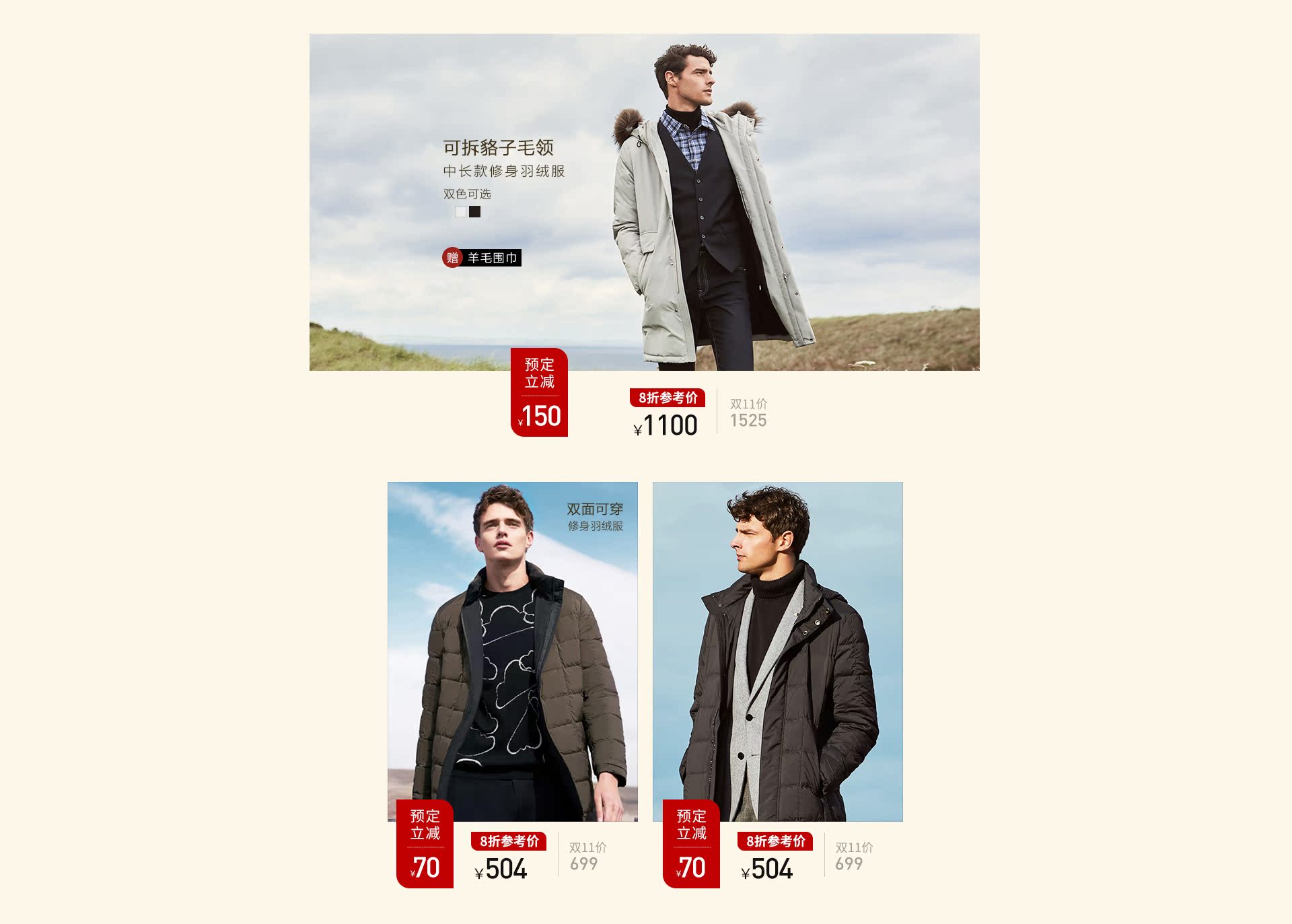 - VICUTU/威可多男冬季羽绒服防风保暖白鸭绒修身外套 惠